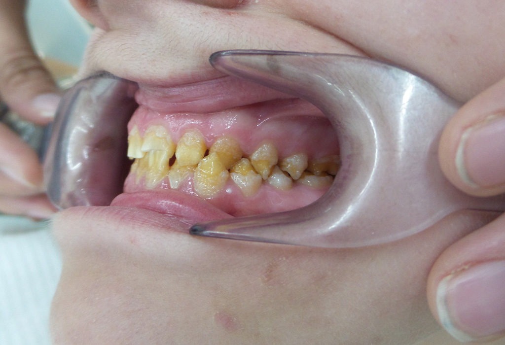 Se trata de una paciente de sexo femenino de 14 años de edad, sin patologías importantes, que presenta Amelogenesis Imperfecta tipo “desmineralización”. Se trata de una alteración en el espesor del esmalte que puede ser más o menos fino, mostrando además hoyos y otras irregularidades, además de alteraciones en el color.